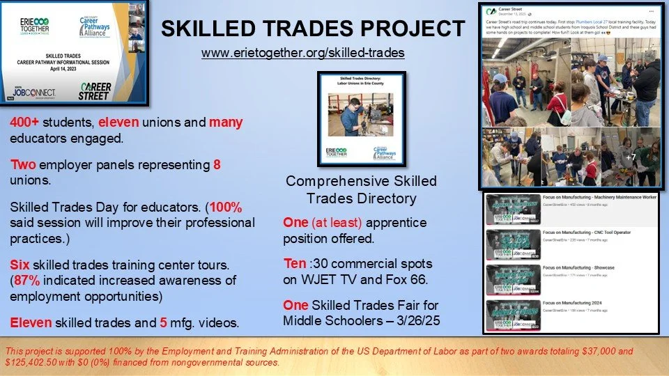 Erie Together’s work in the skilled trades arena has been done through two comprehensive projects providing career exploration opportunities and informational resources for high school and middle school students.